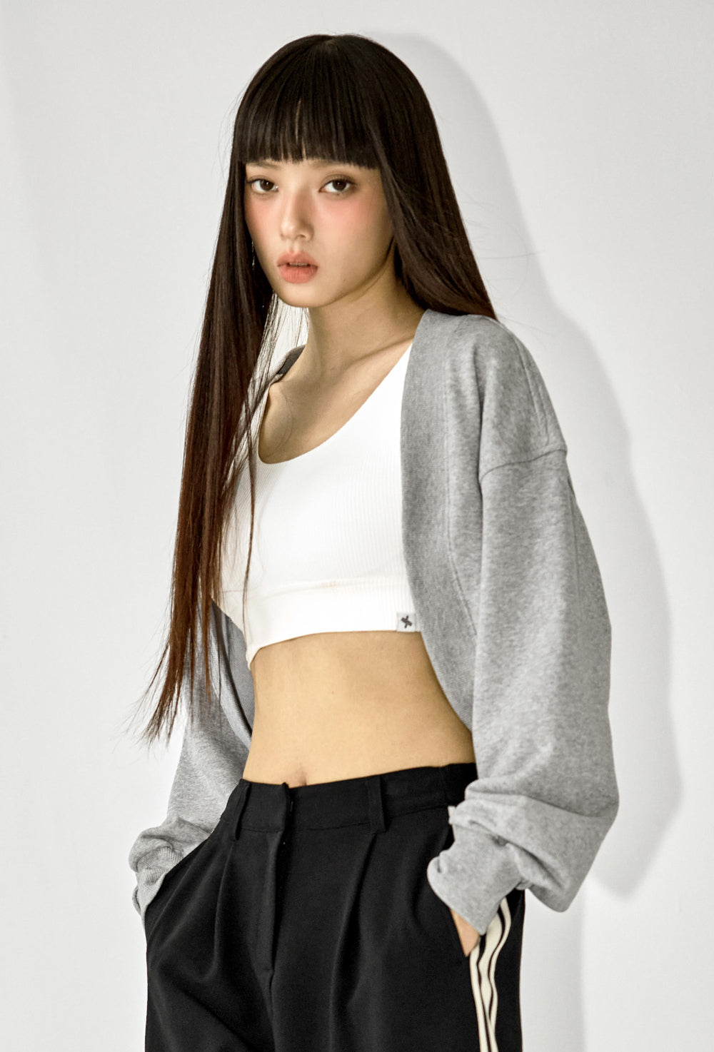 Soft Cotton Balloon Bolero - Melange Gray