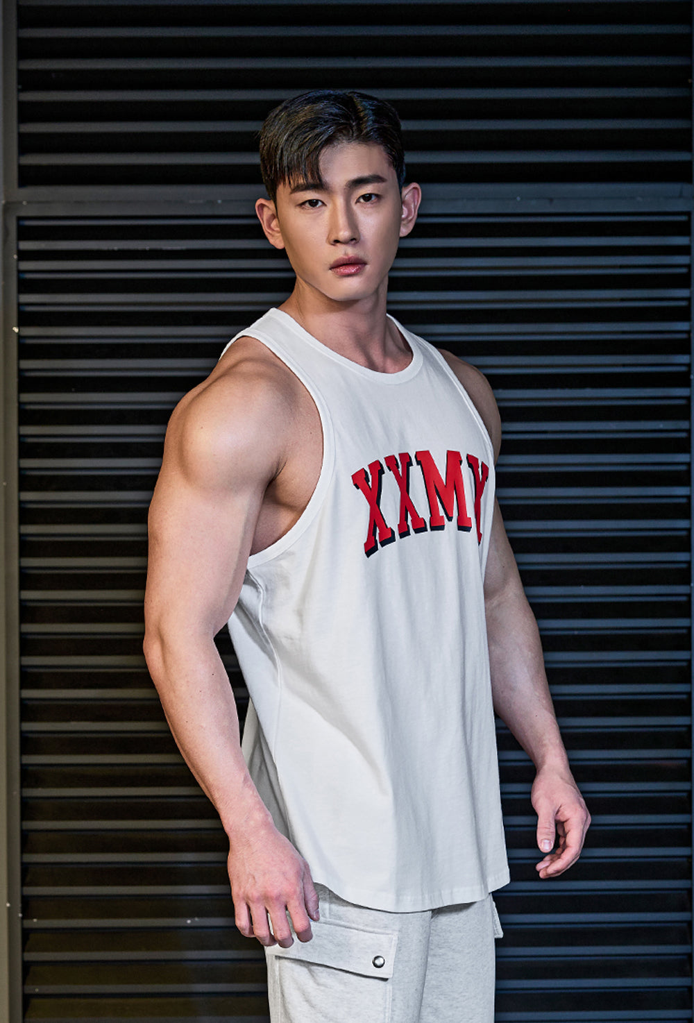 A soft feel that feels good on my body and Sleeveless design that allows you to see your muscles at a glance.