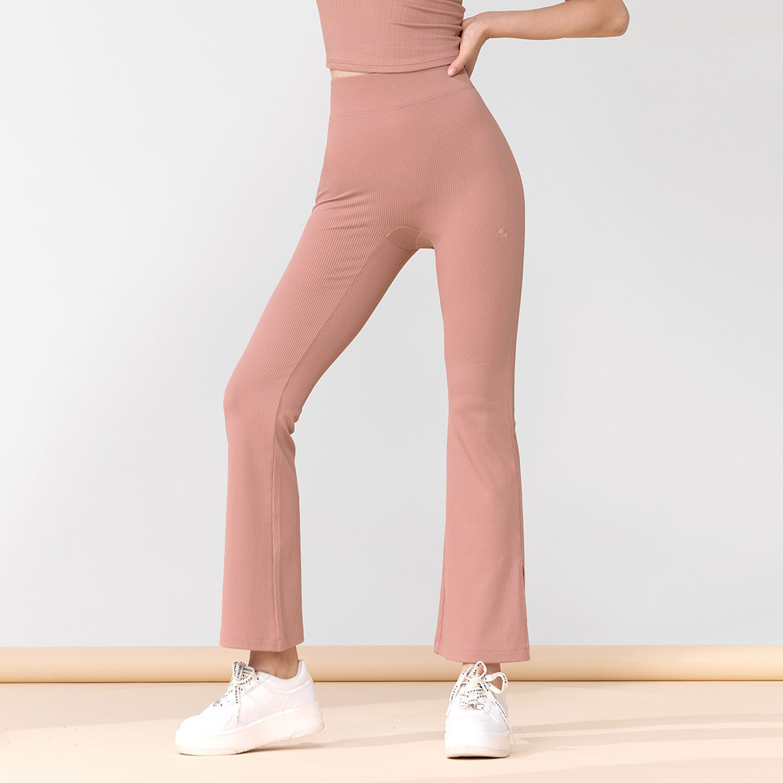 Ribbed Tension Boots Cut Slit Pants - Baroque Rose